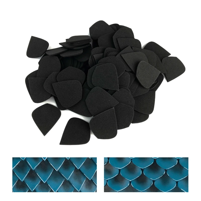 Pour tous nos dragons, sirènes, chasseurs de monstres et cosplayers à l’échelle, celui-ci est pour vous! Épargnez-vous des heures et des heures de coupe avec ces échelles prédécoupées, le cosplay prend suffisamment de temps! Chaque échelle est à double extrémité afin qu’elles puissent être posées dans les deux directions pour deux motifs complètement différents. Nos écailles en mousse sont fabriquées à partir de mousse EVA haute densité et peuvent être formées à chaud, collées, coupées, poncées et peintes comme tous nos autres produits en mousse EVA.